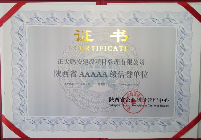 公司榮獲陜西省AAAAA級(jí)信譽(yù)單位