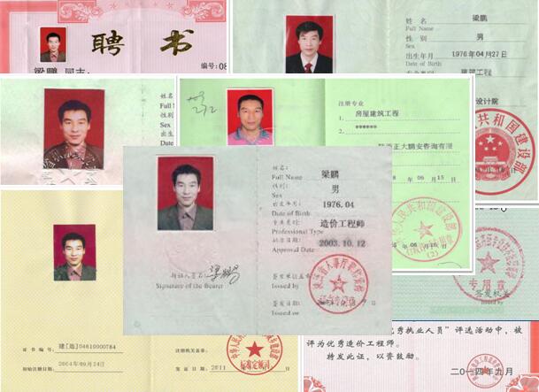 多年來,梁總邊工作、邊學(xué)習(xí),先后取得了一系列證書和榮譽(yù),主要包括:1.高級(jí)工程師,2.注冊造價(jià)工程師,3.注冊監(jiān)理工程師,4.一級(jí)建造師,5.注冊招標(biāo)師,6.陜西省建設(shè)工程評(píng)標(biāo)專家,7.陜西省優(yōu)秀造價(jià)工程師。