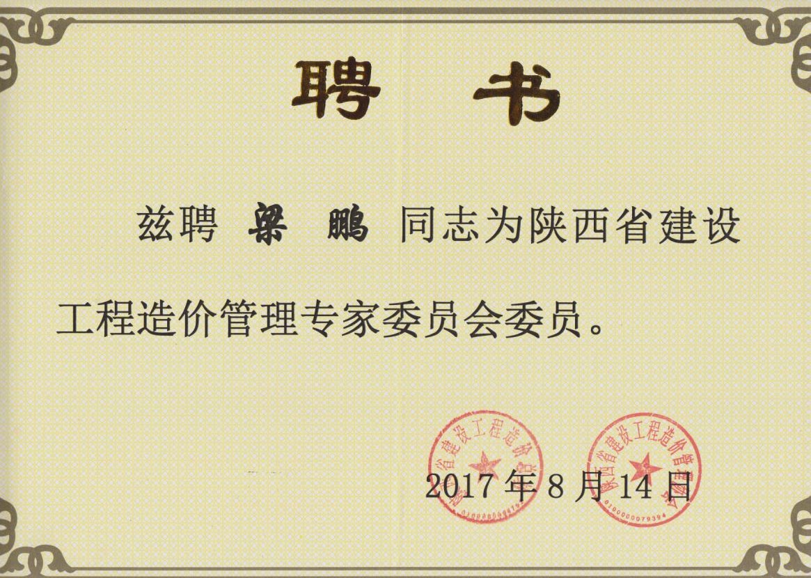 公司總經(jīng)理梁鵬被聘為“陜西省建設(shè)工程造價(jià)管理專家委員會(huì)委員”