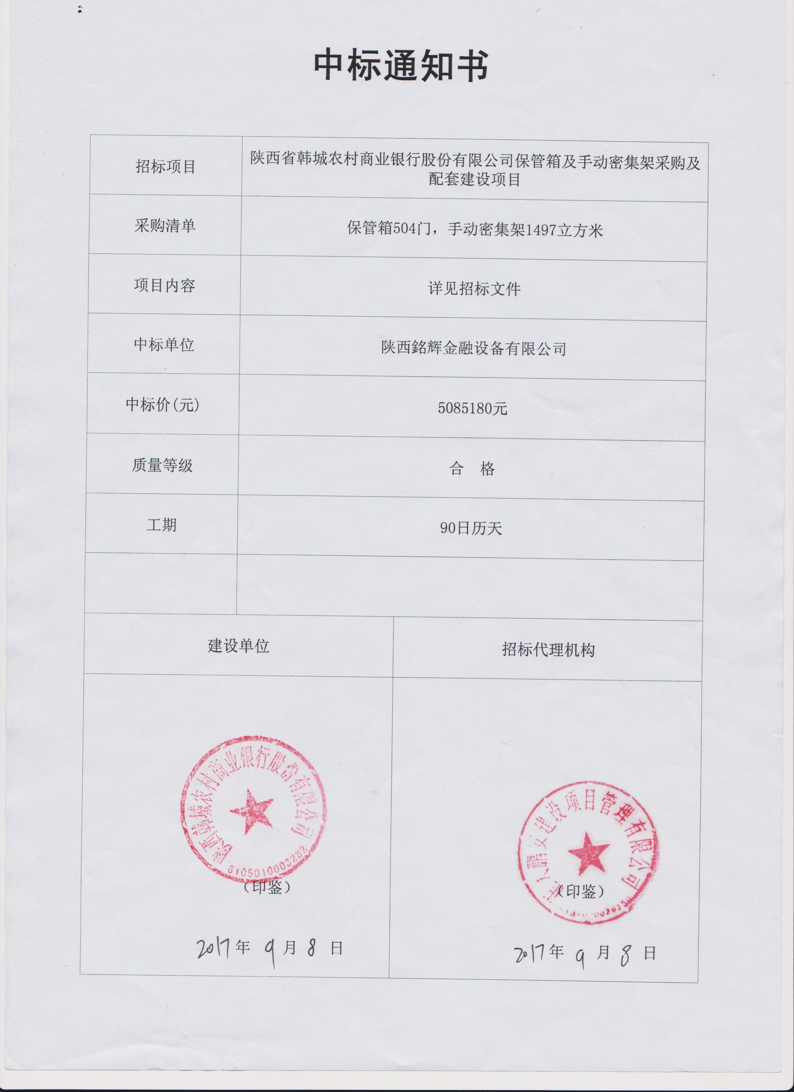 陜西韓城農(nóng)村商業(yè)銀行股份有限公司保管箱及手動密集架采購及配套建設(shè)項目