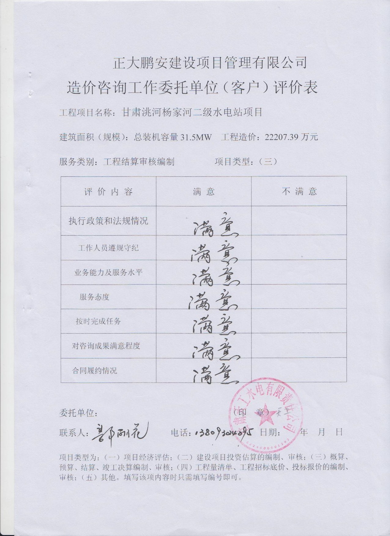 工程名稱:甘肅兆河楊家河二級(jí)水電站