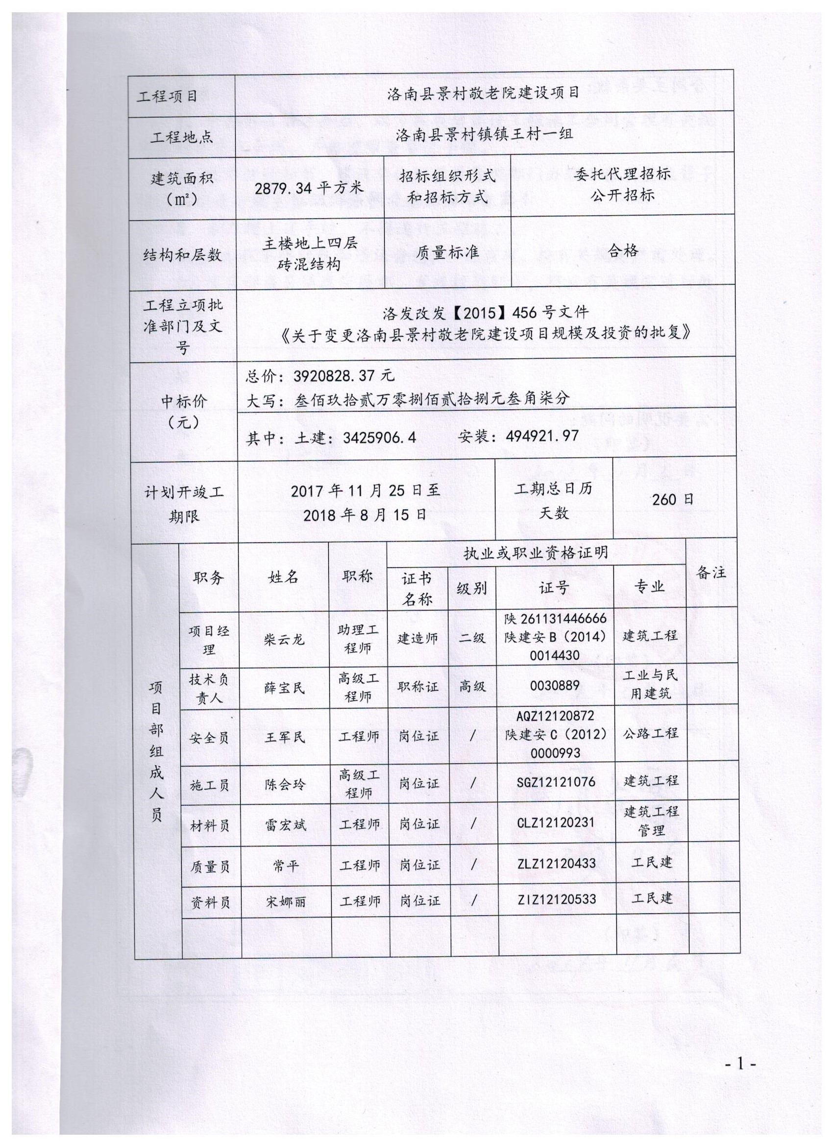 項目名稱:洛南縣景村敬老院項目