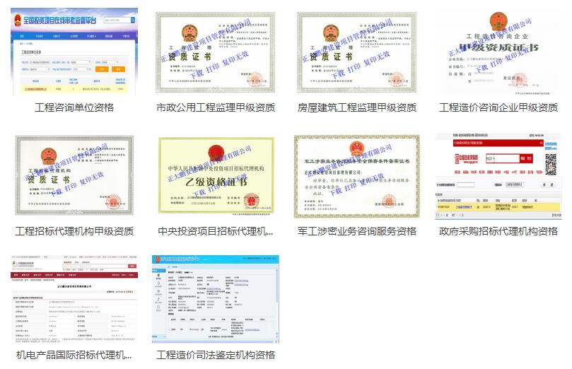 目前,正大鵬安公司各類資質(zhì)資格已達(dá)十項,除“工程咨詢單位資格”外,還有:市政監(jiān)理甲級、房建監(jiān)理甲級、造價咨詢(工程審計)甲級、招標(biāo)代理甲級、中央投資乙級、軍工涉密業(yè)務(wù)咨詢服務(wù)、政府采購招標(biāo)代理、國際招標(biāo)代理、工程造價司法鑒定。
