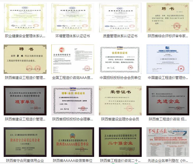 公司現(xiàn)為中國建設(shè)工程造價管理協(xié)會會員,中國投標(biāo)投標(biāo)協(xié)會會員,陜西省建設(shè)工程造價管理協(xié)會理事,陜西省招標(biāo)投標(biāo)協(xié)會理事,陜西省建設(shè)監(jiān)理協(xié)會會員,陜西省招標(biāo)投標(biāo)協(xié)會牽頭成立的招投標(biāo)平臺——陜西通達(dá)電子招投標(biāo)服務(wù)有限公司董事單位和股東單位。近年來,公司先后獲得陜西省工程造價咨詢招標(biāo)代理行業(yè)先進企業(yè)、陜西省守合同重信用企業(yè)、陜西省AAAAA級信譽單位、陜西省工程造價咨詢行業(yè)二十強企業(yè)、全國工程造價咨詢AAA級(最高級)信用企業(yè)和ISO9001體系認(rèn)證等社會榮譽。