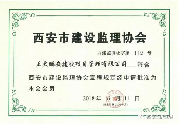 熱烈祝賀正大鵬安公司成為西安市建設(shè)監(jiān)理協(xié)會會員