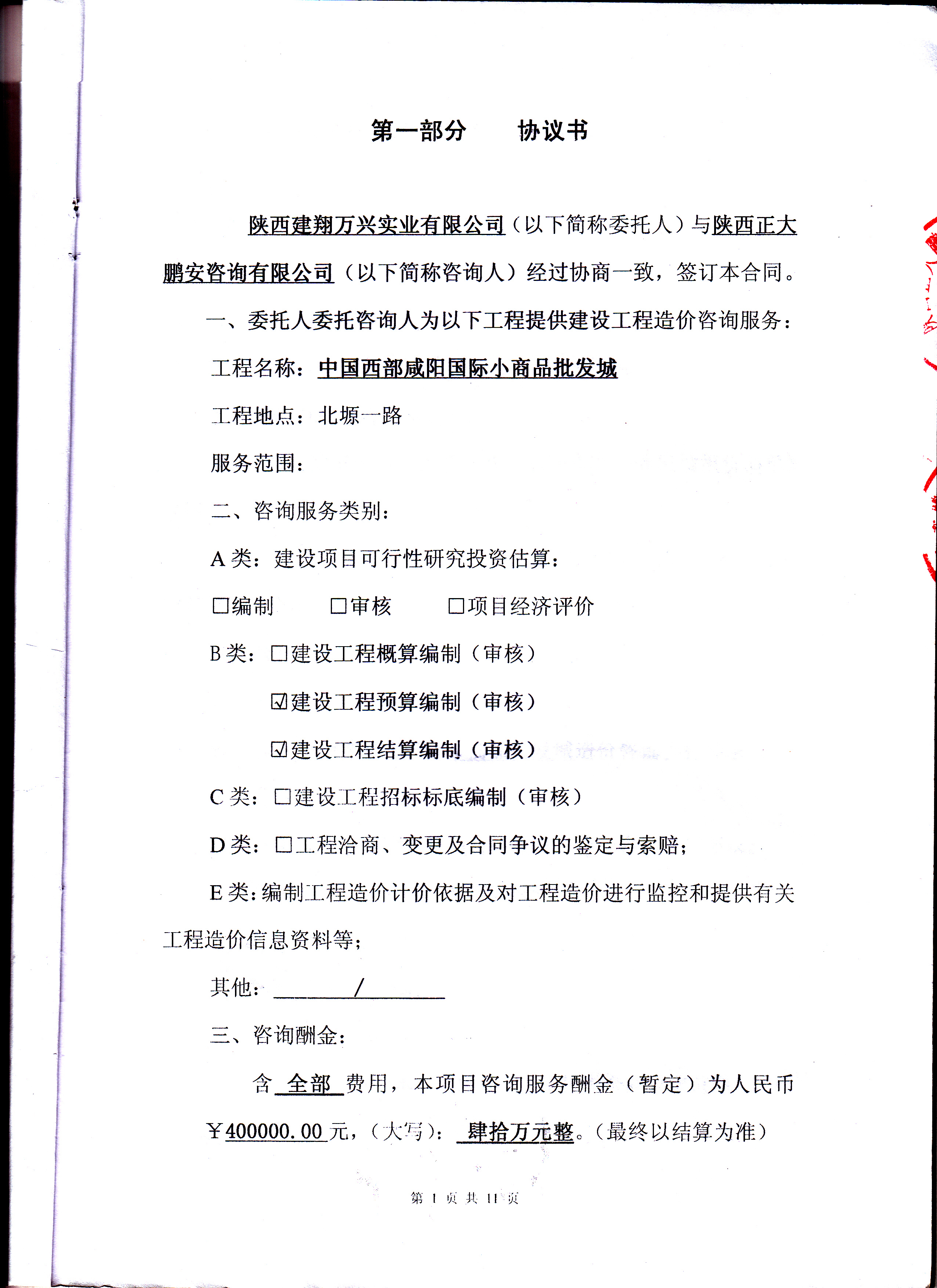 工程名稱:中國(guó)西部咸陽(yáng)國(guó)際小商品批發(fā)城建設(shè)工程造價(jià)咨詢項(xiàng)目