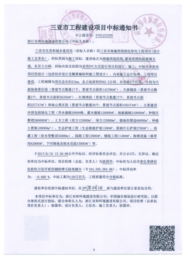 項目名稱:三亞市海榆西線綠化彩化工程項目(勘察、設計、施工)項目概況:海榆西線沿線,建設范圍西起崖城互通,東至大兵橋,項目估算總投資約為1.21億元。其中勘察費約81.75萬元,設計費約310.52萬元,建安工程費約1.02億元。