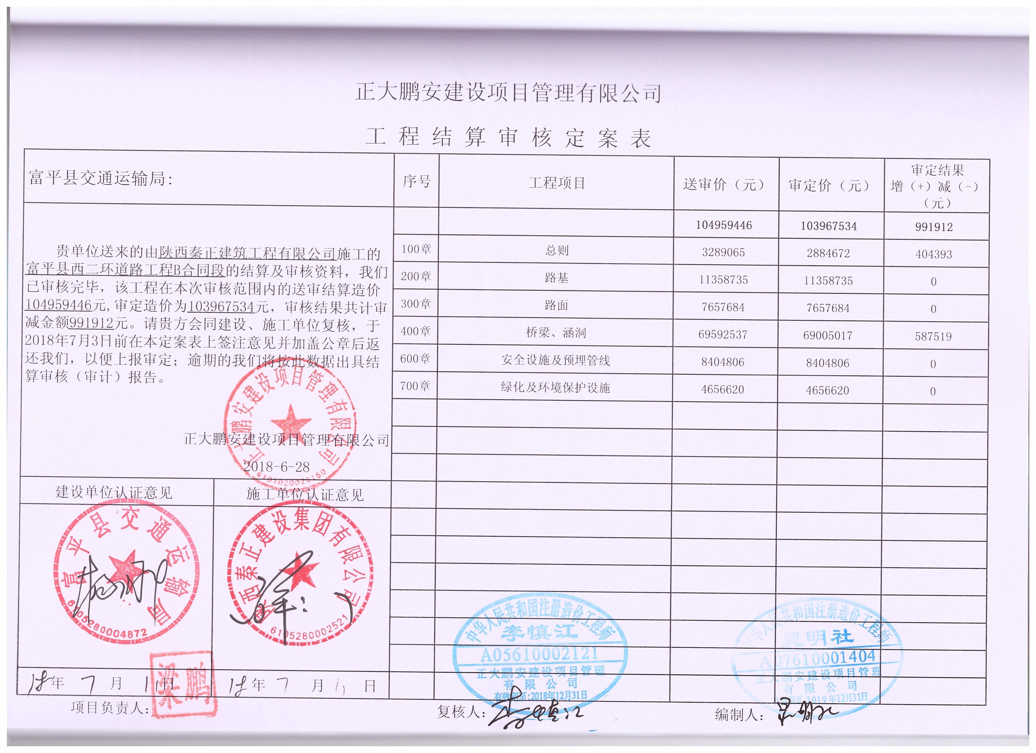 工程概況:本標(biāo)段全長1.3km,主要合同建設(shè)內(nèi)容為:路基、路面、橋涵、安全設(shè)施及預(yù)埋管線、綠化及環(huán)境保護(hù)設(shè)施等竣工結(jié)算進(jìn)行審核,送審金額:1.04億元,審定:1.03億元。