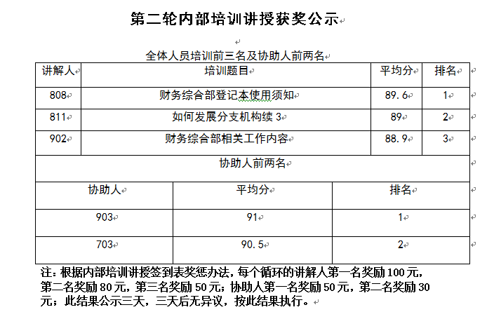 第二輪內(nèi)部培訓(xùn)講授獲獎(jiǎng)公示