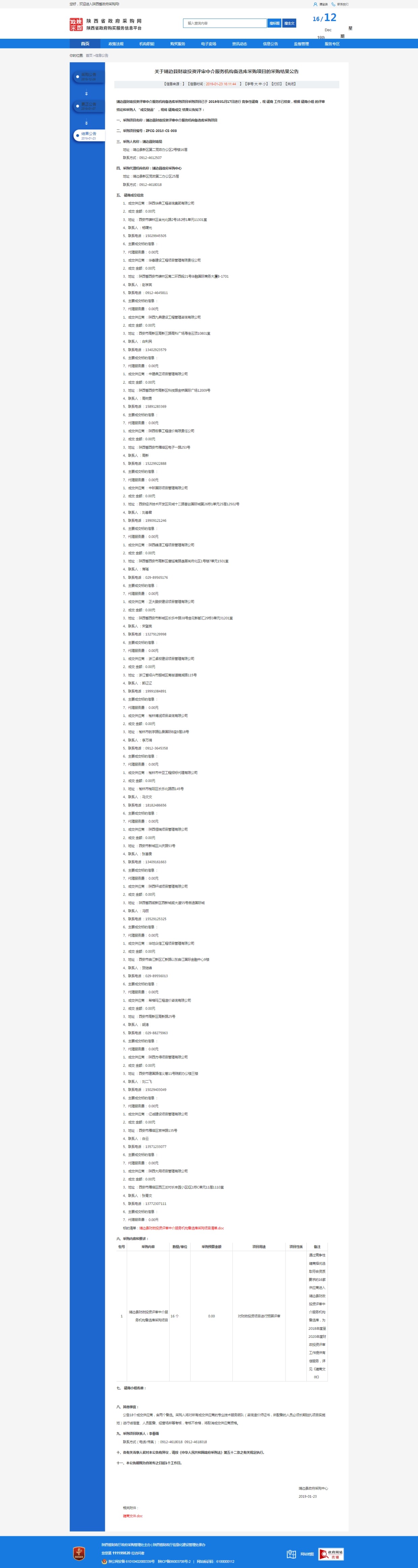 2019年1月23日,經(jīng)評(píng)標(biāo)委員會(huì)綜合評(píng)審,招標(biāo)人確認(rèn),正大鵬安建設(shè)項(xiàng)目管理有限公司入圍靖邊縣財(cái)政投資評(píng)審中介服務(wù)機(jī)構(gòu)備選庫采購項(xiàng)目。