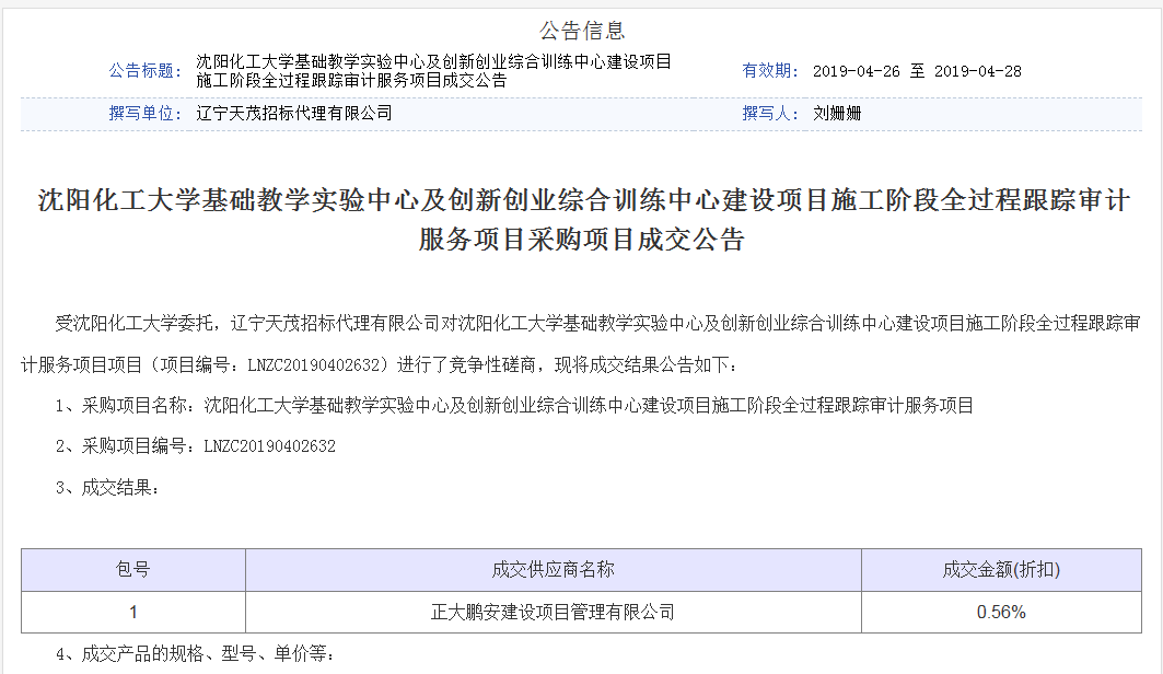 正大鵬安中標(biāo)沈陽化工大學(xué)基礎(chǔ)教學(xué)實(shí)驗(yàn)中心及創(chuàng)新創(chuàng)業(yè)綜合訓(xùn)練中心建設(shè)項(xiàng)目施工階段全過程跟蹤審計(jì)服務(wù)項(xiàng)目