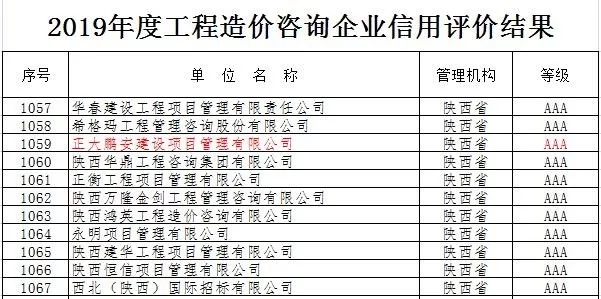 熱烈祝賀正大鵬安公司榮獲2019年度工程造價(jià)咨詢企業(yè)信用評(píng)價(jià)AAA級(jí)
