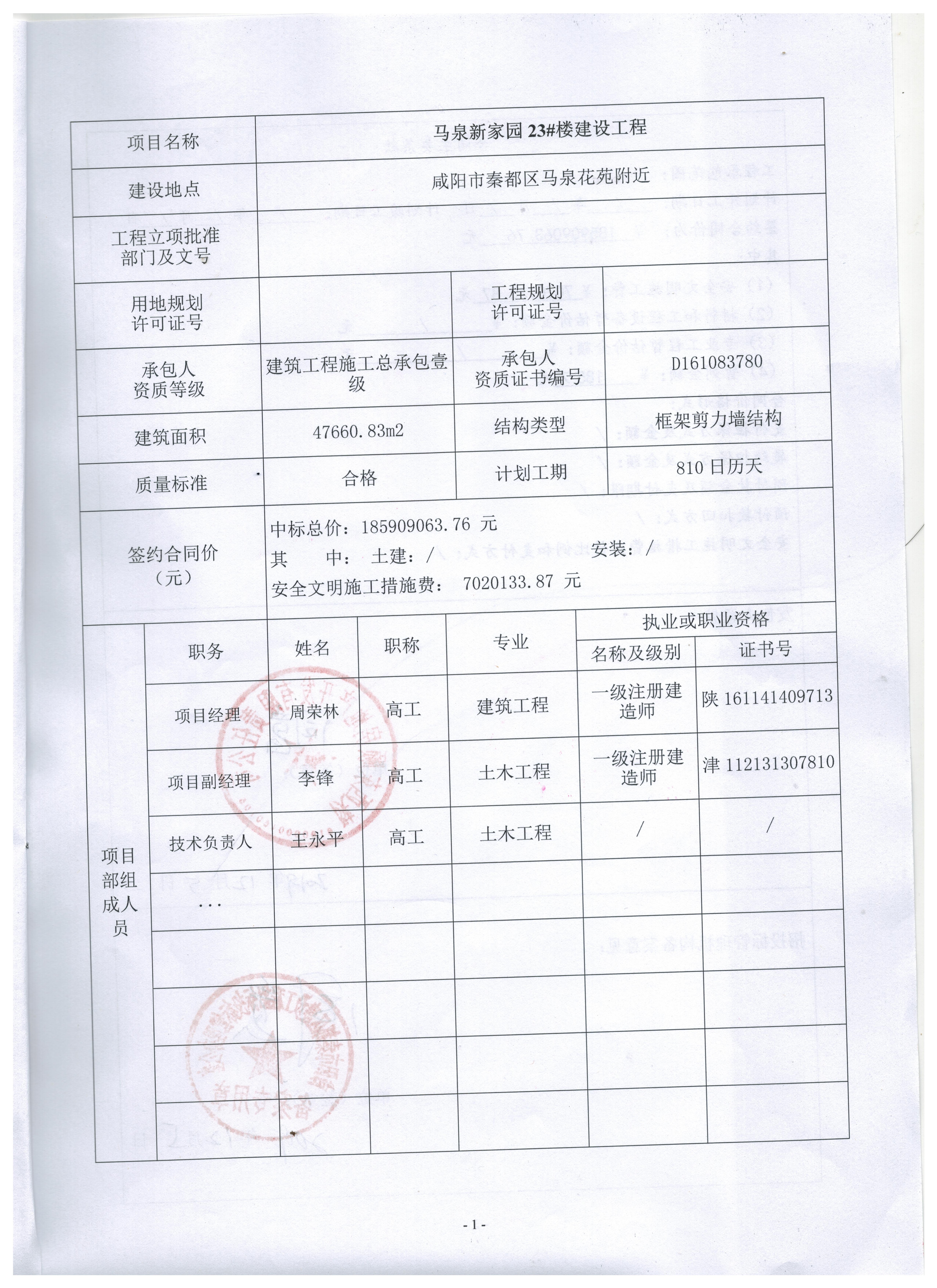 項目名稱:馬泉新家園23#樓及地下車庫建設(shè)工程