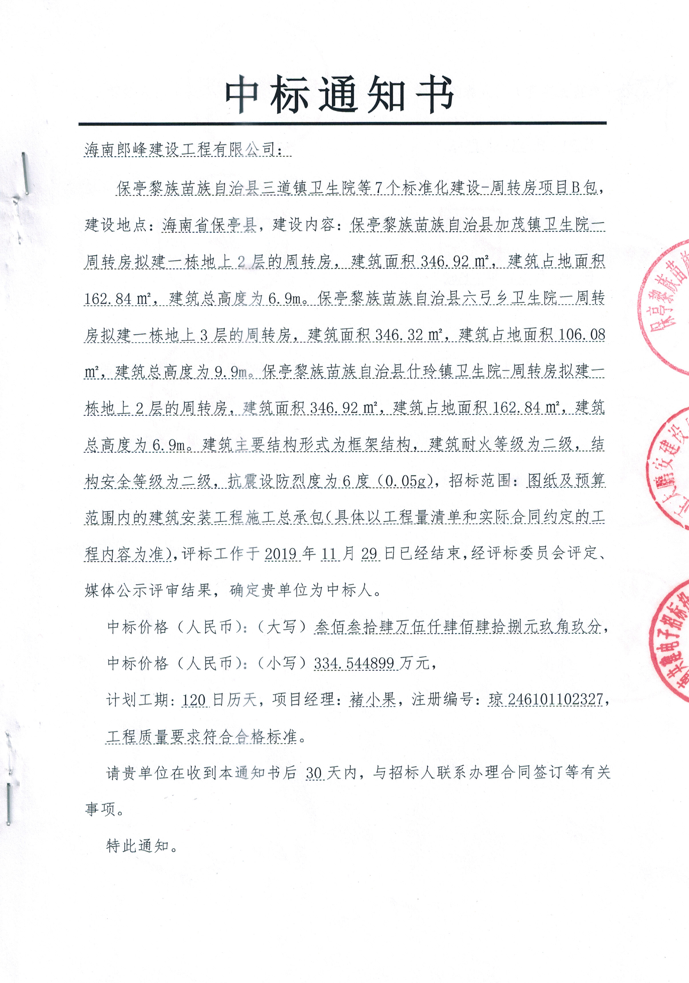 項目名稱:保亭黎族苗族自治縣三道鎮(zhèn)衛(wèi)生院等7個標準化建設(shè)-周轉(zhuǎn)房項目