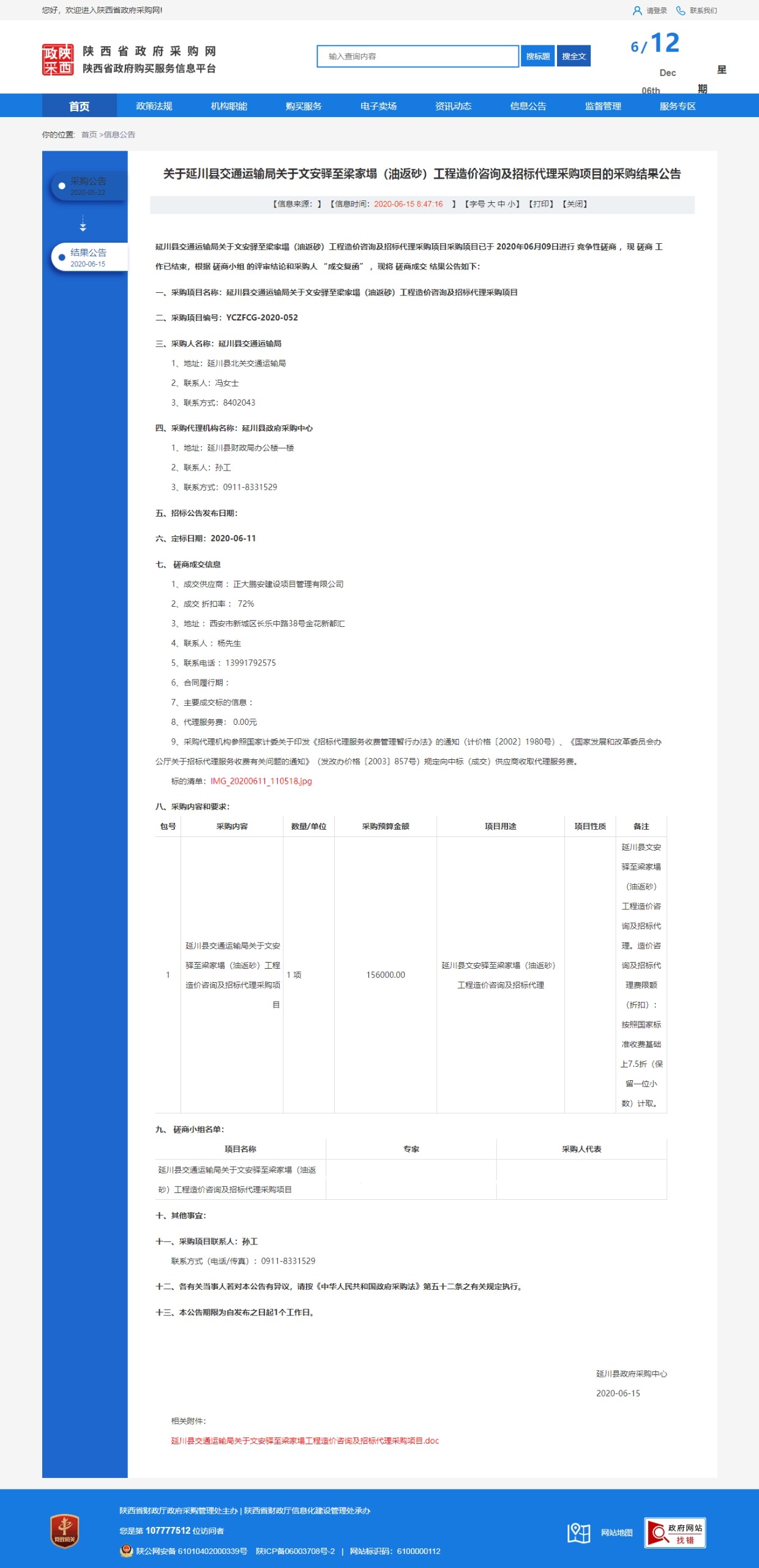 正大鵬安中標(biāo)延川縣交通運(yùn)輸局關(guān)于文安驛至梁家塌(油返砂)工程造價(jià)咨詢及招標(biāo)代理采購(gòu)項(xiàng)目