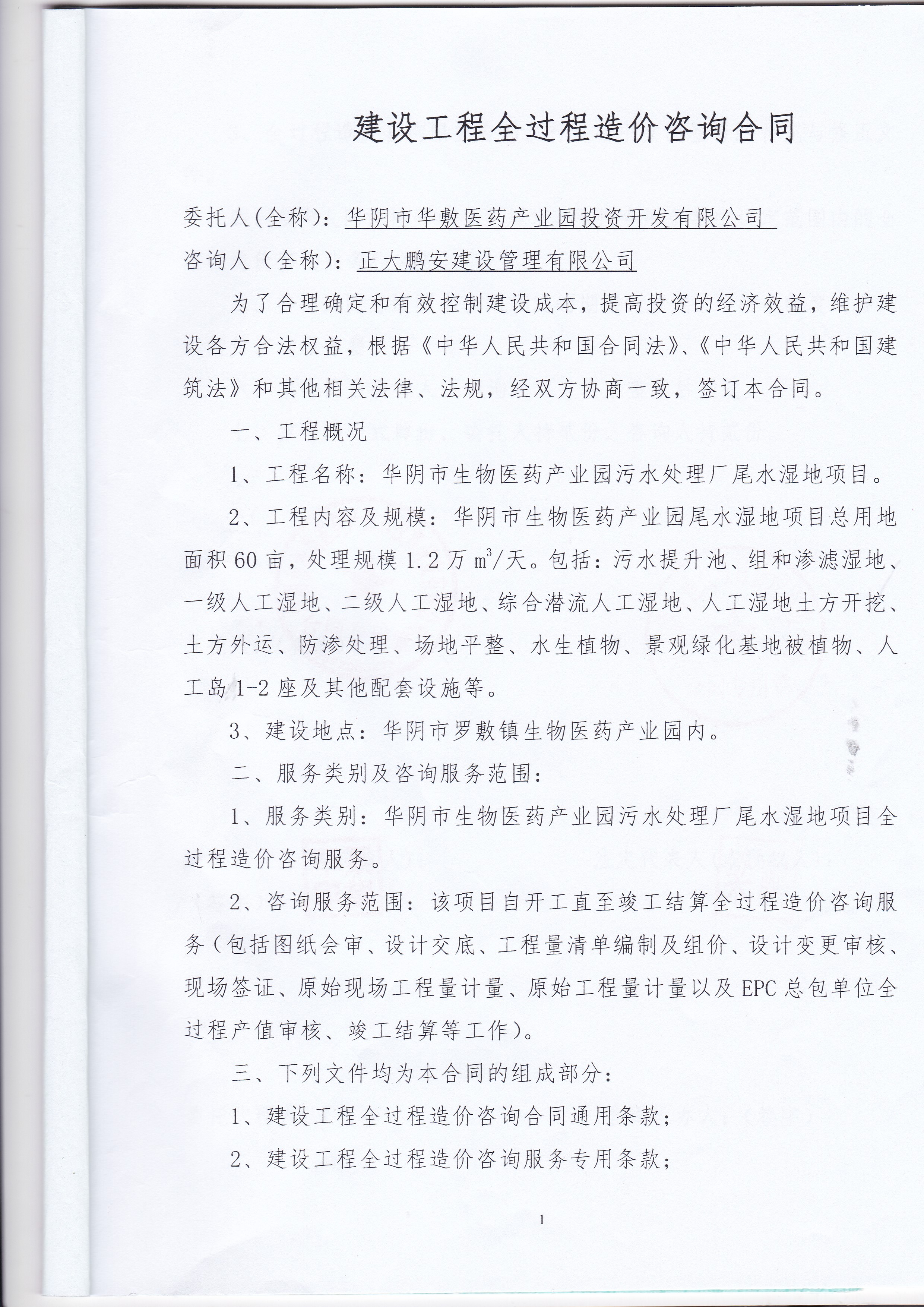 工程概況:華陰市生物醫(yī)藥產(chǎn)業(yè)園尾水濕地項(xiàng)目總用地面積60畝,處理規(guī)模1.2萬(wàn)m3/天。包括:污水提升池、組和滲濾濕地、一級(jí)人工濕地、二級(jí)人工濕地、綜合潛流人工濕地、人工濕地土方開(kāi)挖、土方外運(yùn)、防滲處理、場(chǎng)地平整、水生植物、景觀綠化基地被植物、人工島1-2座及其他配套設(shè)施等。正大鵬安建設(shè)項(xiàng)目管理有限公司負(fù)責(zé)本項(xiàng)目的結(jié)算審核工作。