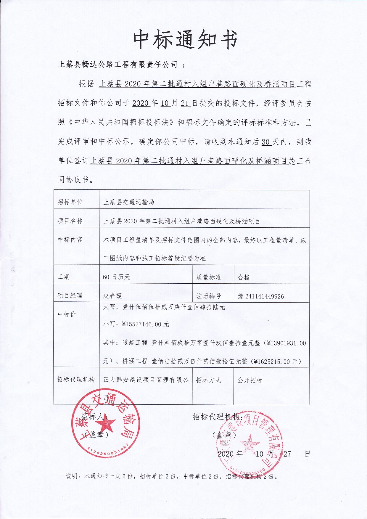 上蔡縣2020年第二批通村入組戶巷路面硬化及橋涵項(xiàng)目招標(biāo)代理
