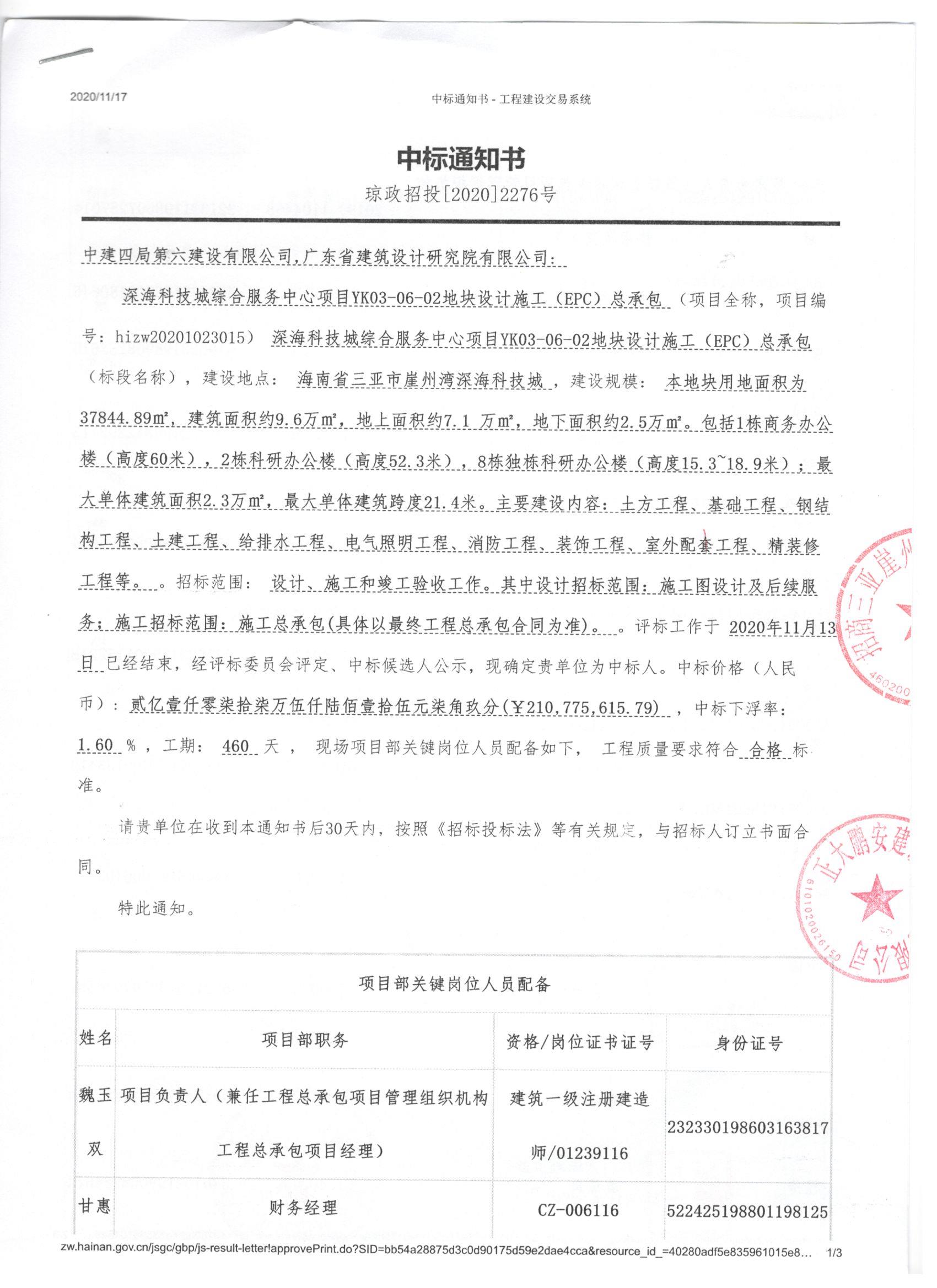 項(xiàng)目名稱(chēng):深??萍汲蔷C合服務(wù)中心項(xiàng)目YK03-06-02地塊設(shè)計(jì)施工(EPC)總承包