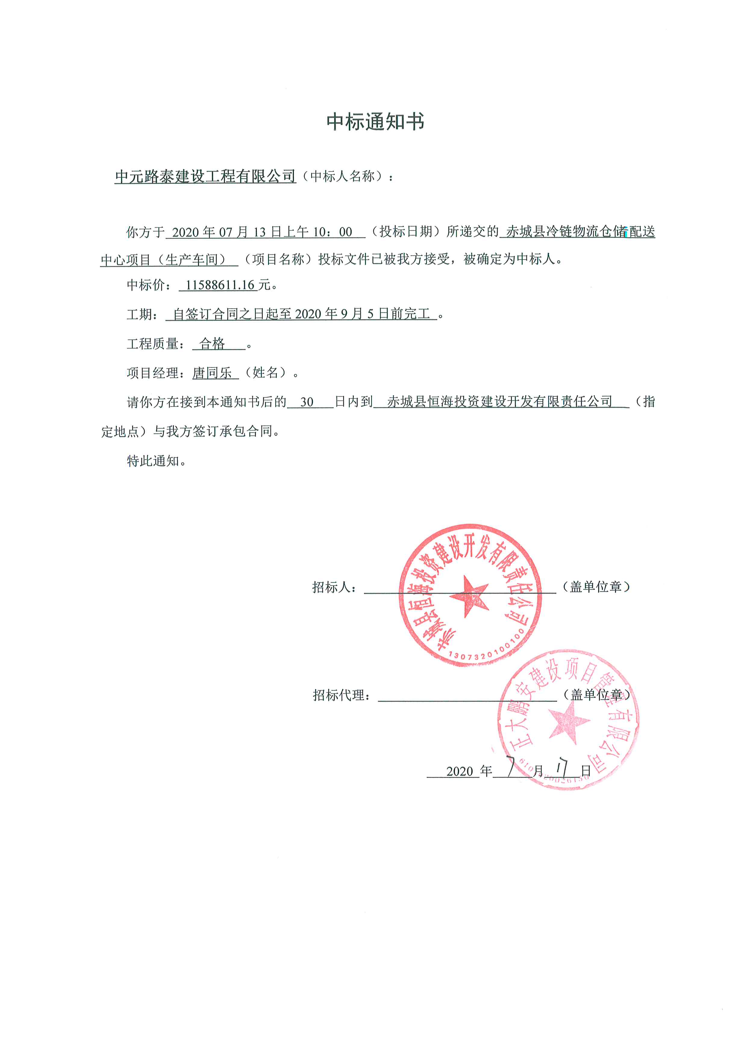 項(xiàng)目名稱:赤城縣冷鏈物流倉(cāng)儲(chǔ)配送中心項(xiàng)目