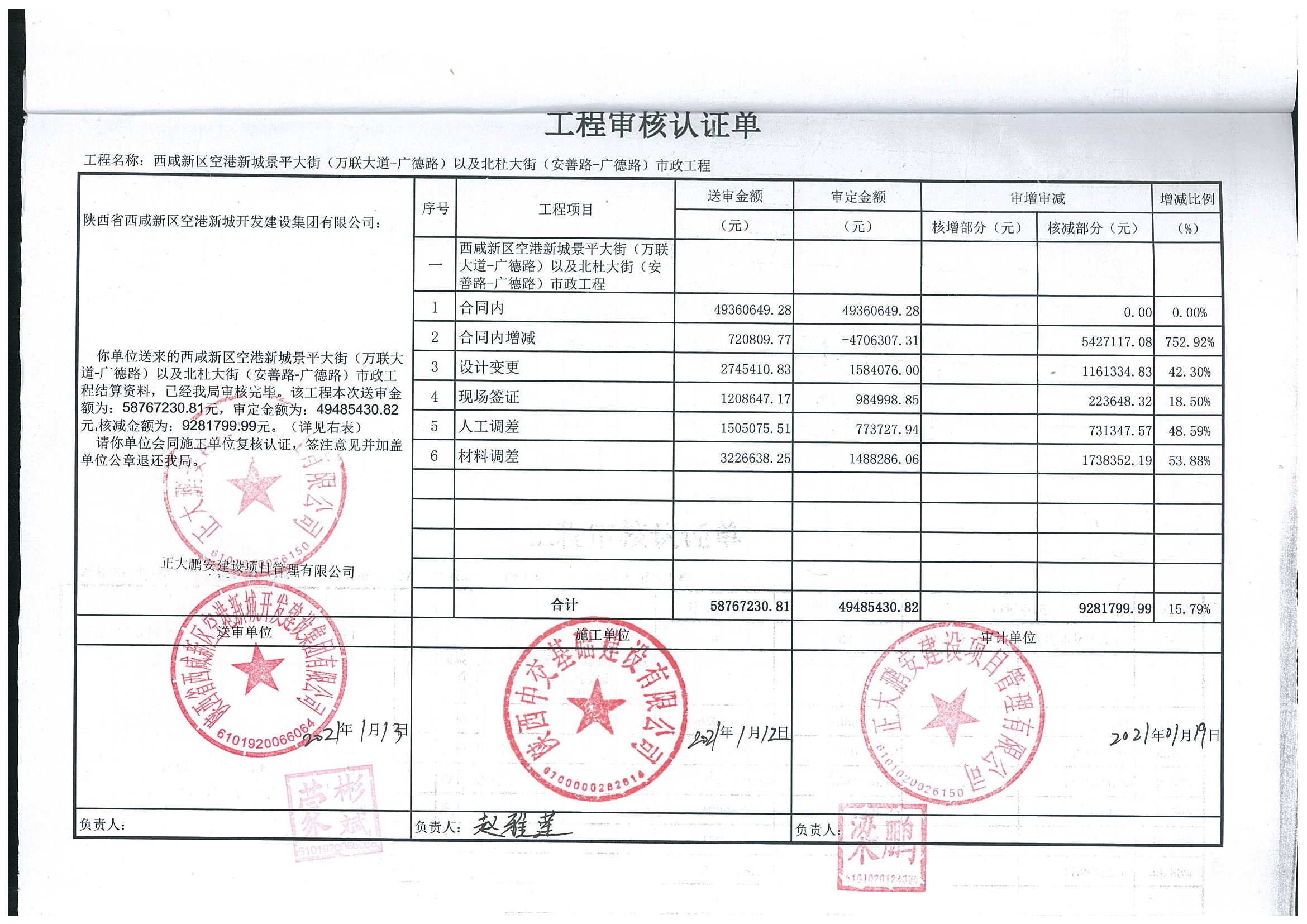 西咸新區(qū)空港新城景平大街(萬聯(lián)大道-廣德路)以及北杜大街(安德路-廣德路)結(jié)算審核工程