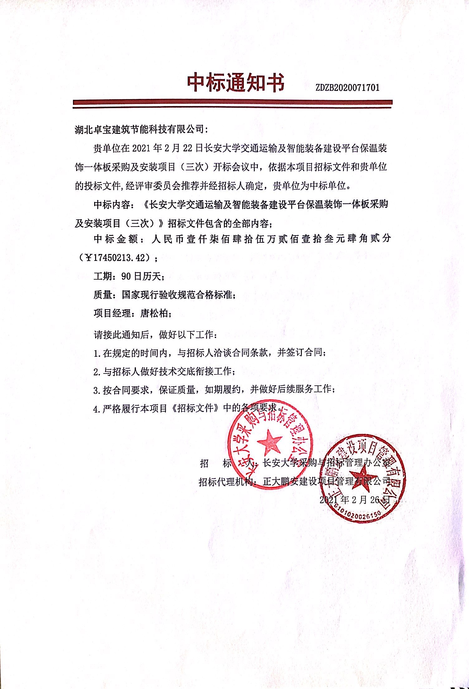 長安大學交通運輸及智能裝備建設(shè)平臺保溫裝飾一體板采購及安裝項目