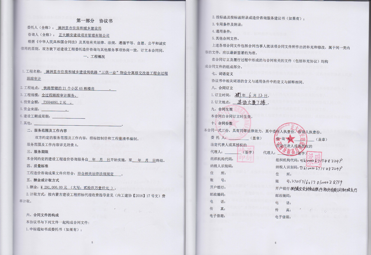 項目名稱:滿洲里市住房和城鄉(xiāng)建設(shè)局鐵路“三供一業(yè)”物業(yè)分離移交改造工程全過程跟蹤審計