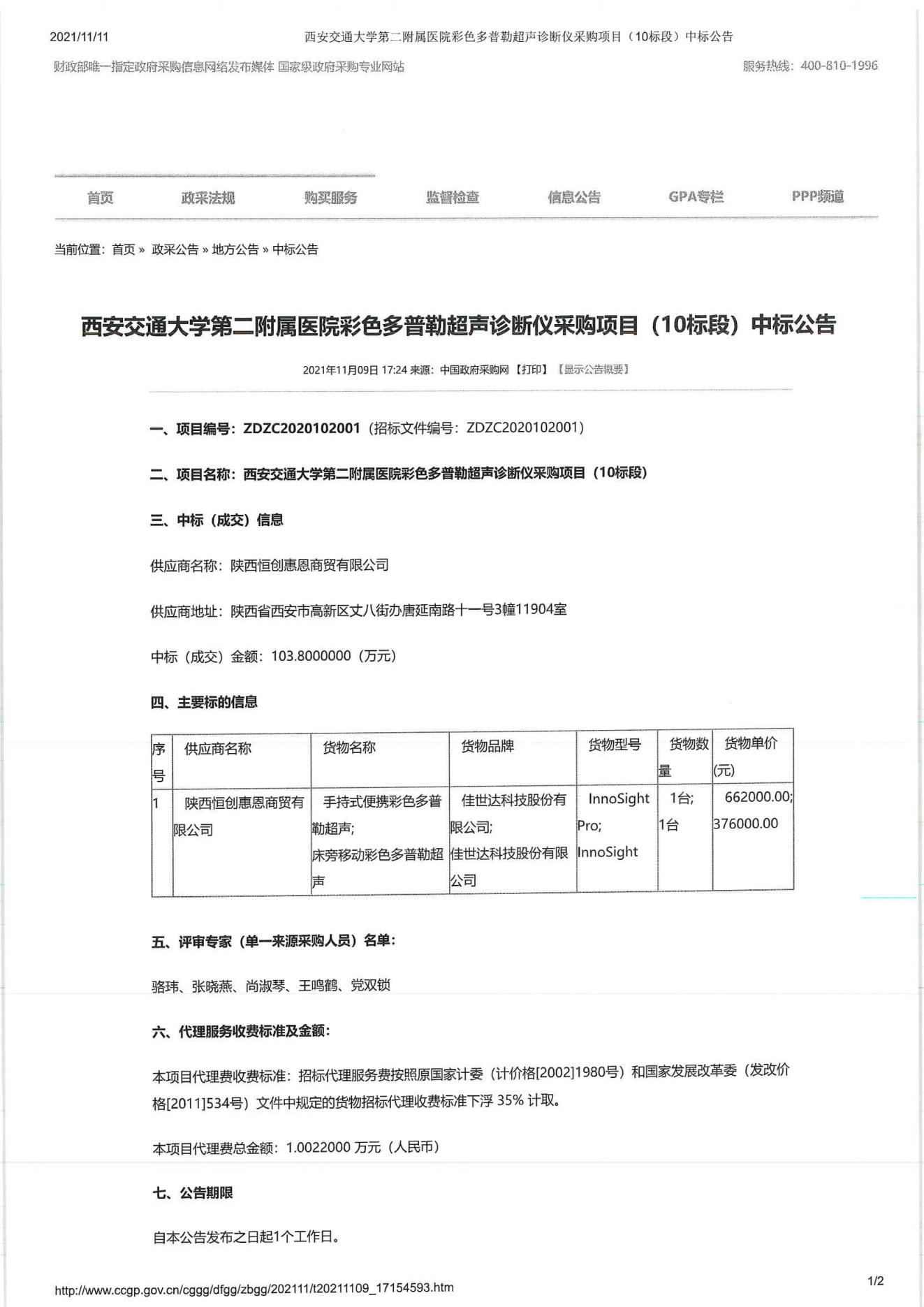 項(xiàng)目名稱:西安交通大學(xué)第二附屬醫(yī)院彩色多普勒超聲診斷儀采購(gòu)項(xiàng)目