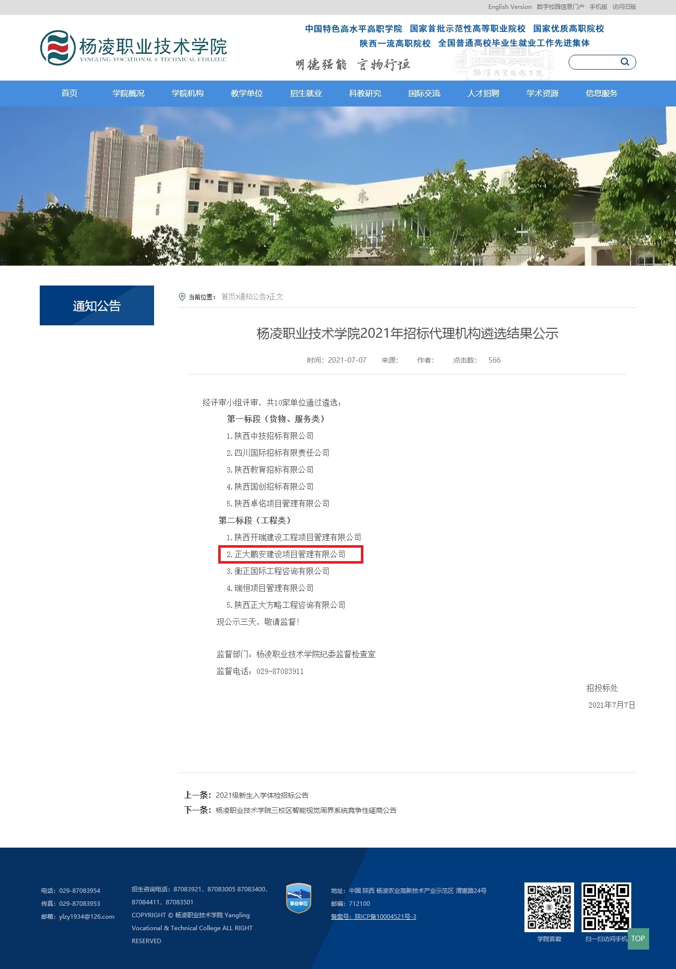 正大鵬安入圍楊凌職業(yè)技術(shù)學(xué)院2021年招標(biāo)代理機(jī)構(gòu)遴選項(xiàng)目