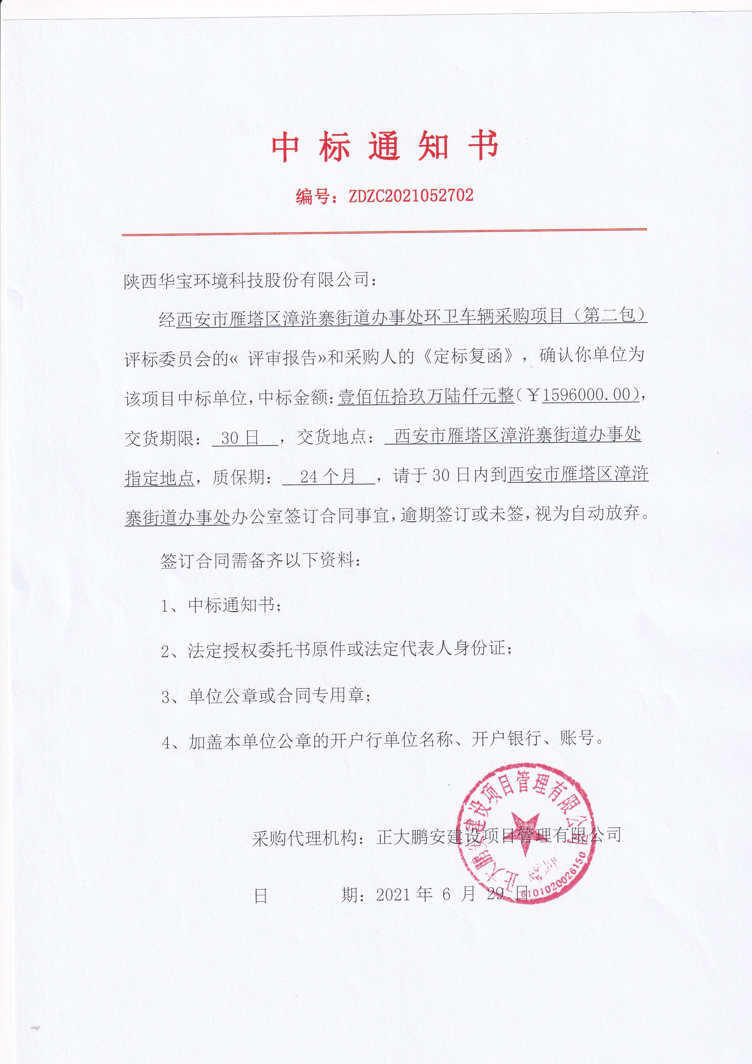 西安市雁塔區(qū)漳滸寨街道辦事處環(huán)衛(wèi)車輛采購項目