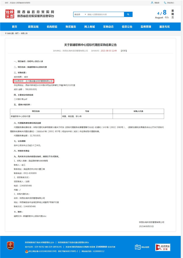 正大鵬安中標(biāo)延安吳起縣新建職教中心招標(biāo)代理項目
