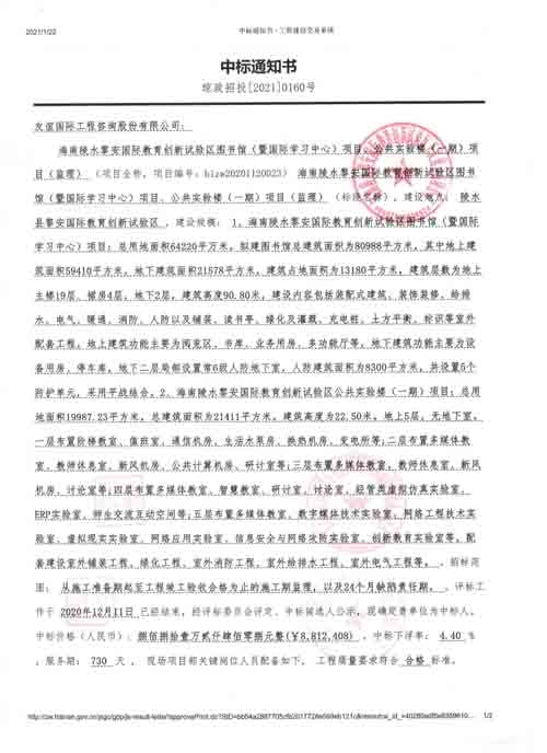 項目名稱:海南陵水黎安國際教育創(chuàng)新試驗區(qū)圖書館(暨國際學(xué)習(xí)中心)項目、公共實驗樓(一期)項目