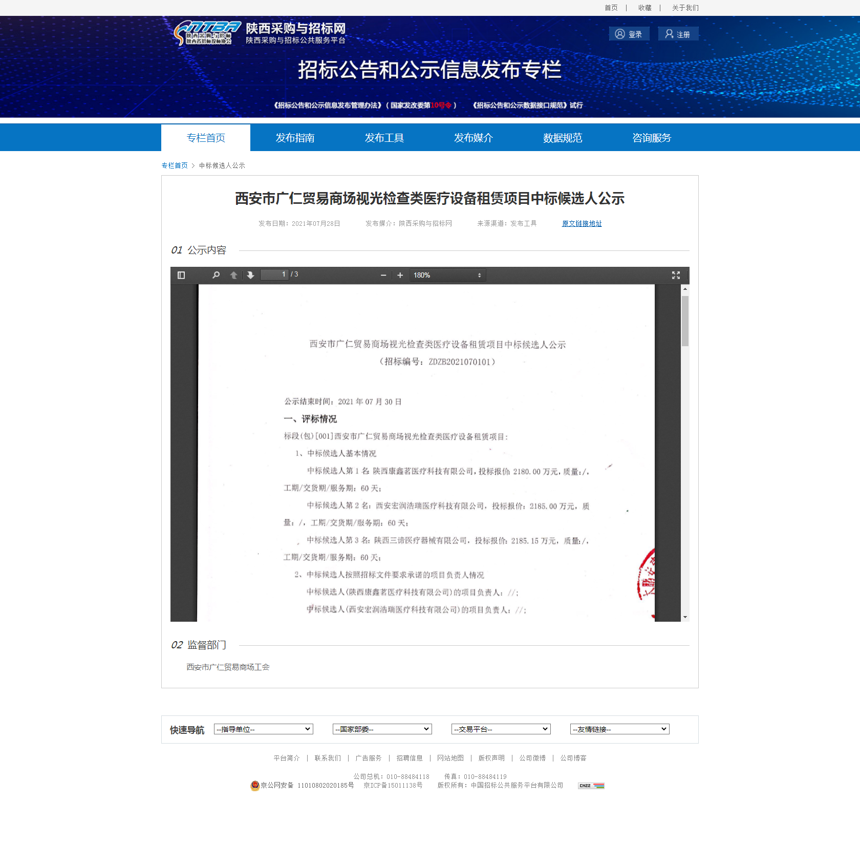 西安市廣仁貿(mào)易商場視光檢查類醫(yī)療設(shè)備租賃項目