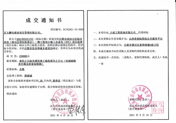 正大鵬安中標(biāo)呂梁市老舊小區(qū)綜合改造(離石區(qū)濱河街道辦)一期工程設(shè)計(jì)施工總承包(EPC)項(xiàng)目監(jiān)理