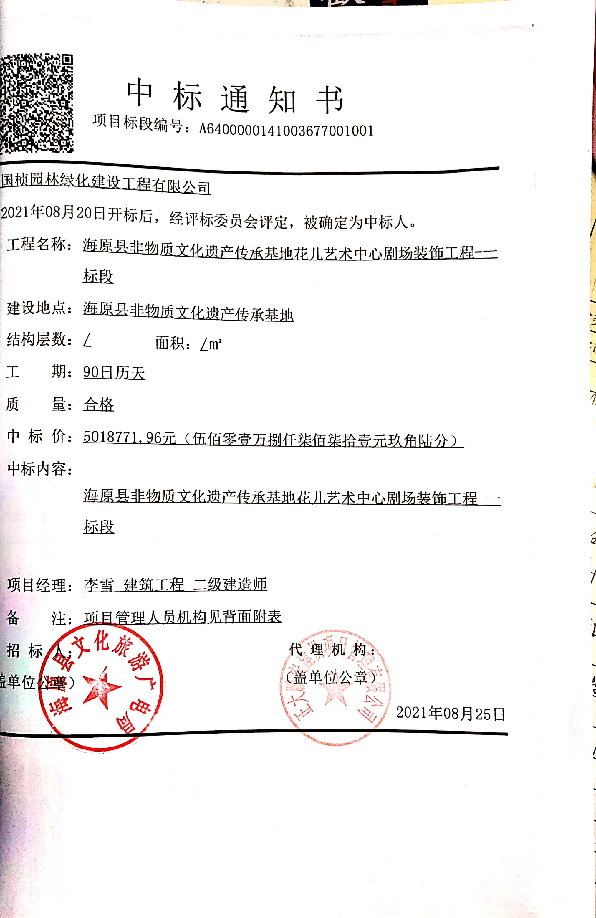 項目名稱:海原縣非物質(zhì)文化遺產(chǎn)傳承基地花兒與藝術(shù)中心劇場裝修項目