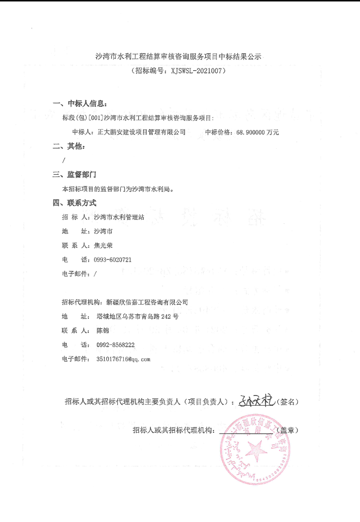 沙灣市水利工程結(jié)算審核咨詢服務(wù)項(xiàng)目結(jié)果公示