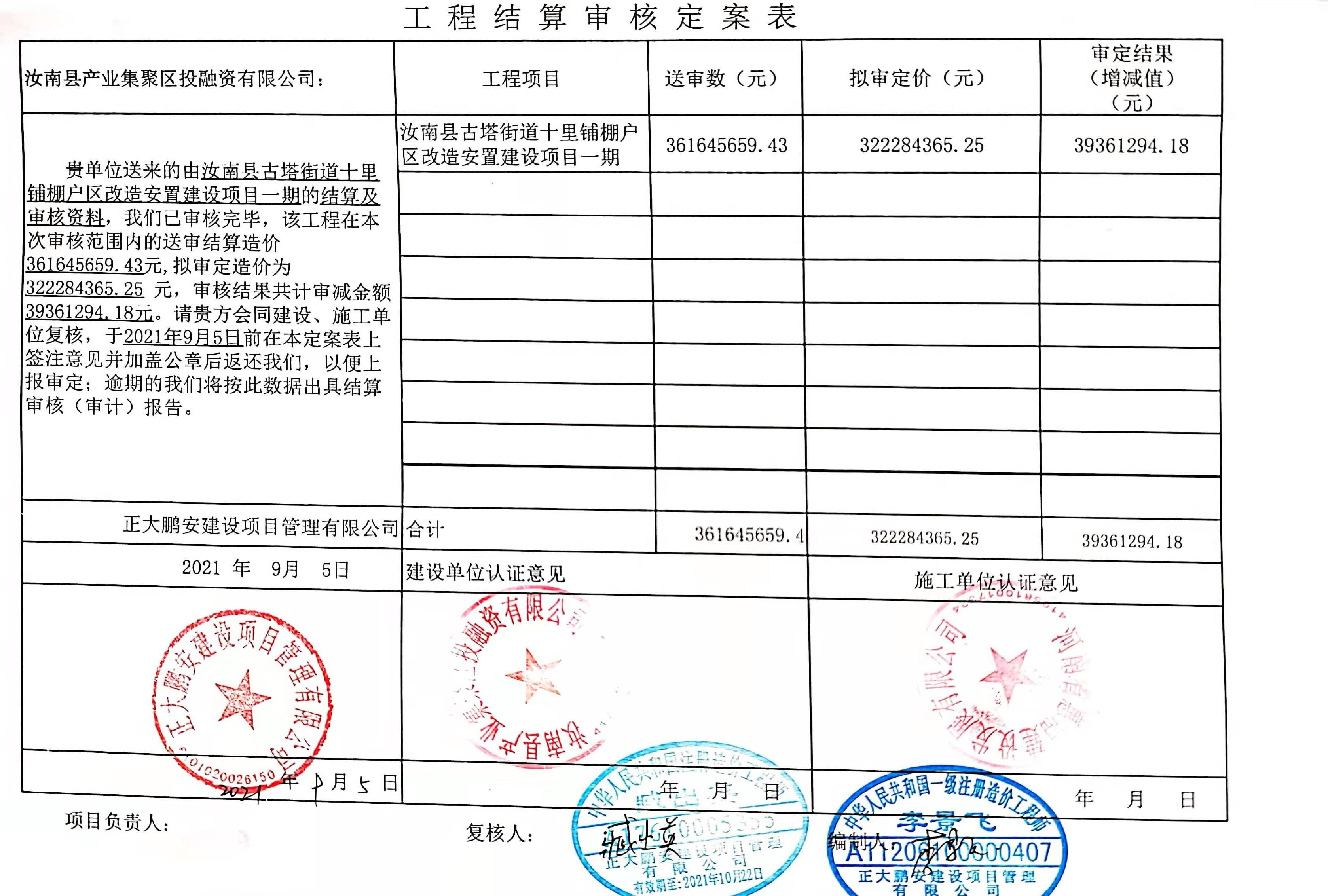 項目名稱:汝南縣古塔街道十里鋪棚戶區(qū)改造安置房建設(shè)項目工結(jié)算
