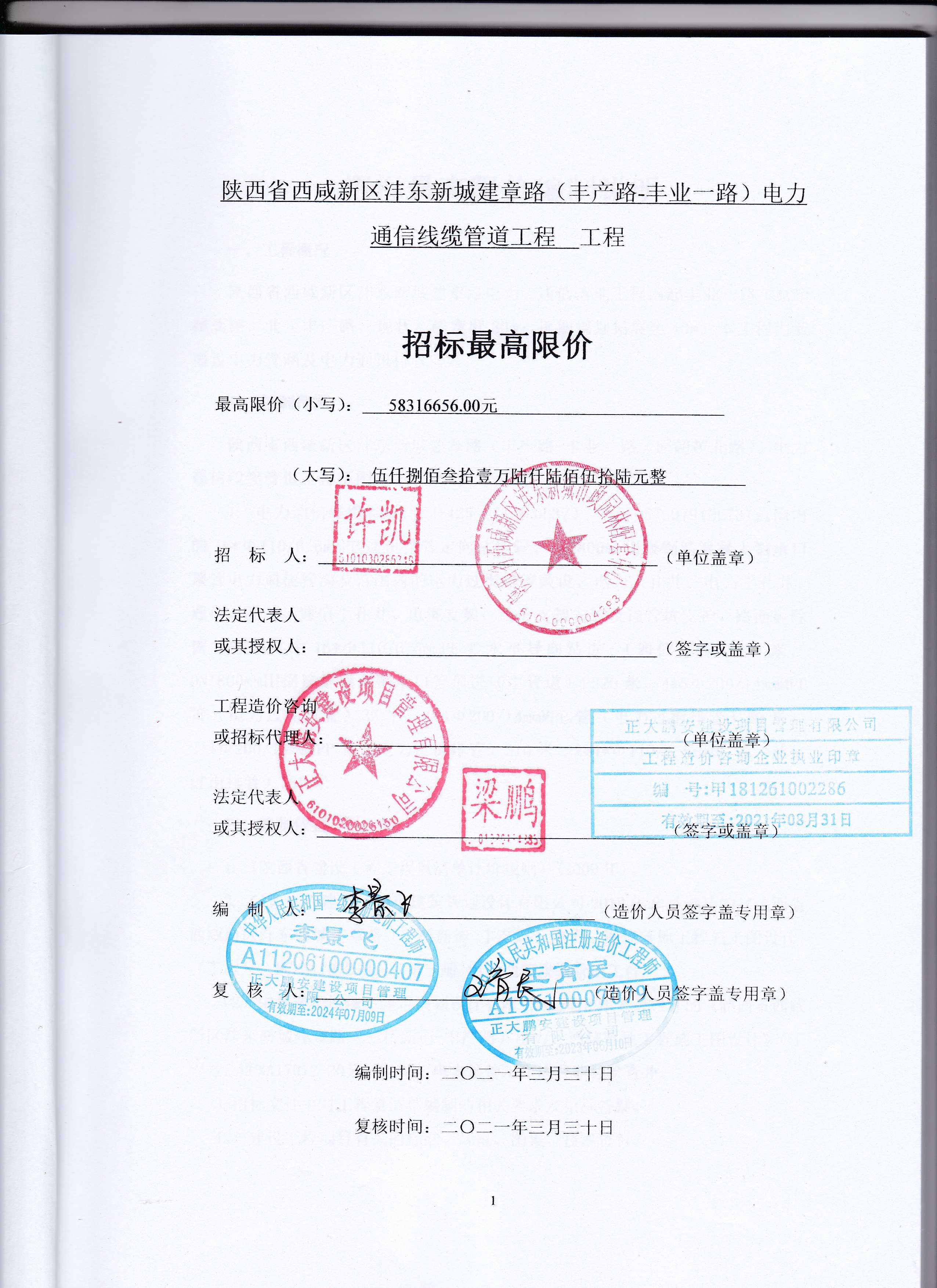 工程概況:陜西省西咸新區(qū)灃東新城建章路(豐產(chǎn)路-豐業(yè)一路)電力通信線纜管道工程限價(jià)金額:5831.66萬(wàn)元。紅線寬30m,本工程為新增電力管涵及電力通訊排管等。
