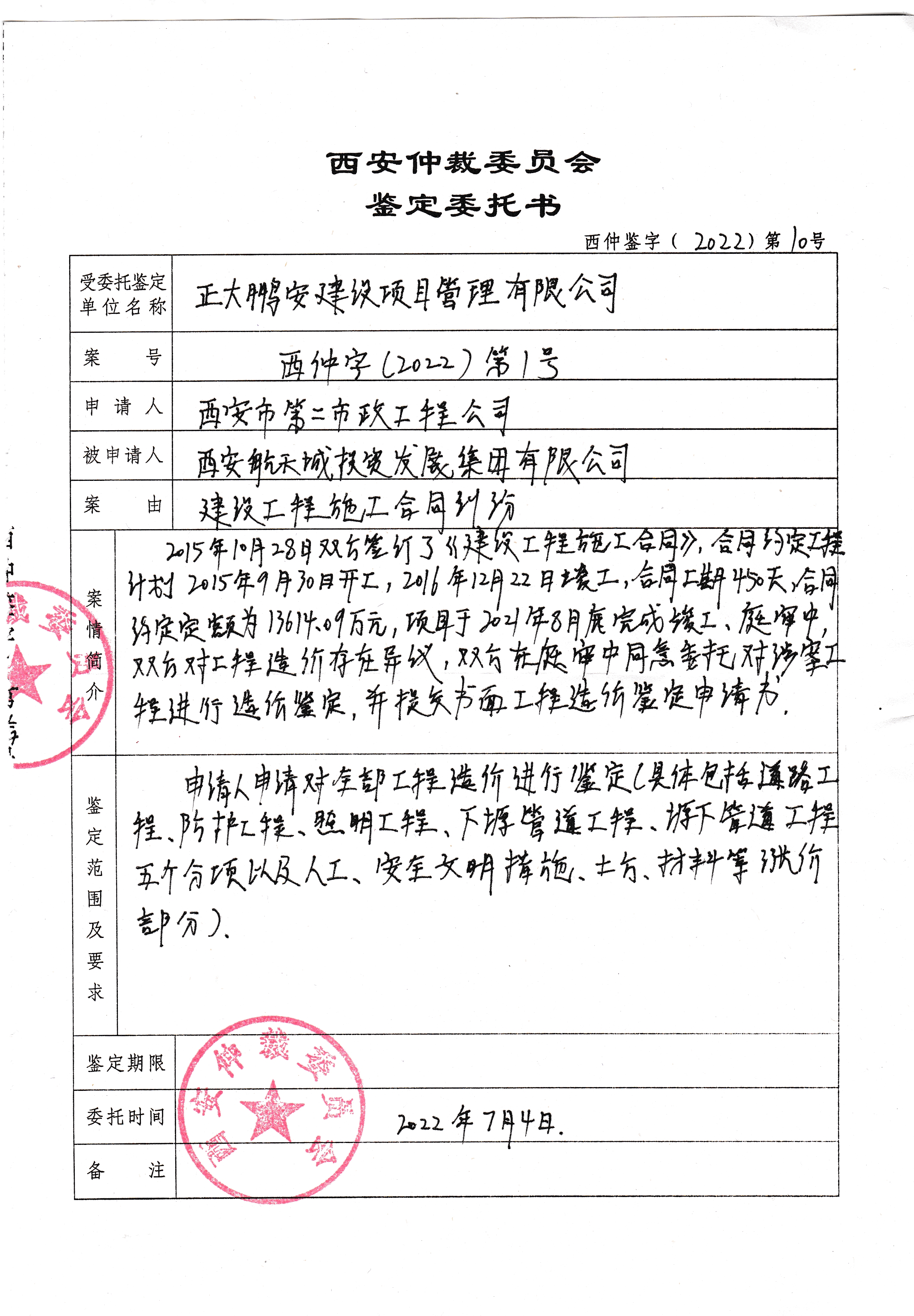 2022年7月5日,經(jīng)西安仲裁委員會(huì)確認(rèn),正大鵬安建設(shè)項(xiàng)目管理有限公司中標(biāo)“西安國(guó)家民用航天產(chǎn)業(yè)基地下源路橘河排水工程施工項(xiàng)目”造價(jià)鑒定項(xiàng)目。