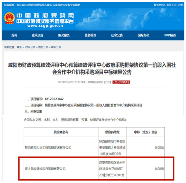 正大鵬安入圍咸陽市財(cái)政預(yù)算績效評審中心政府采購框架協(xié)議第一階段入圍社會(huì)合作中介機(jī)構(gòu)采購項(xiàng)目D 標(biāo)段