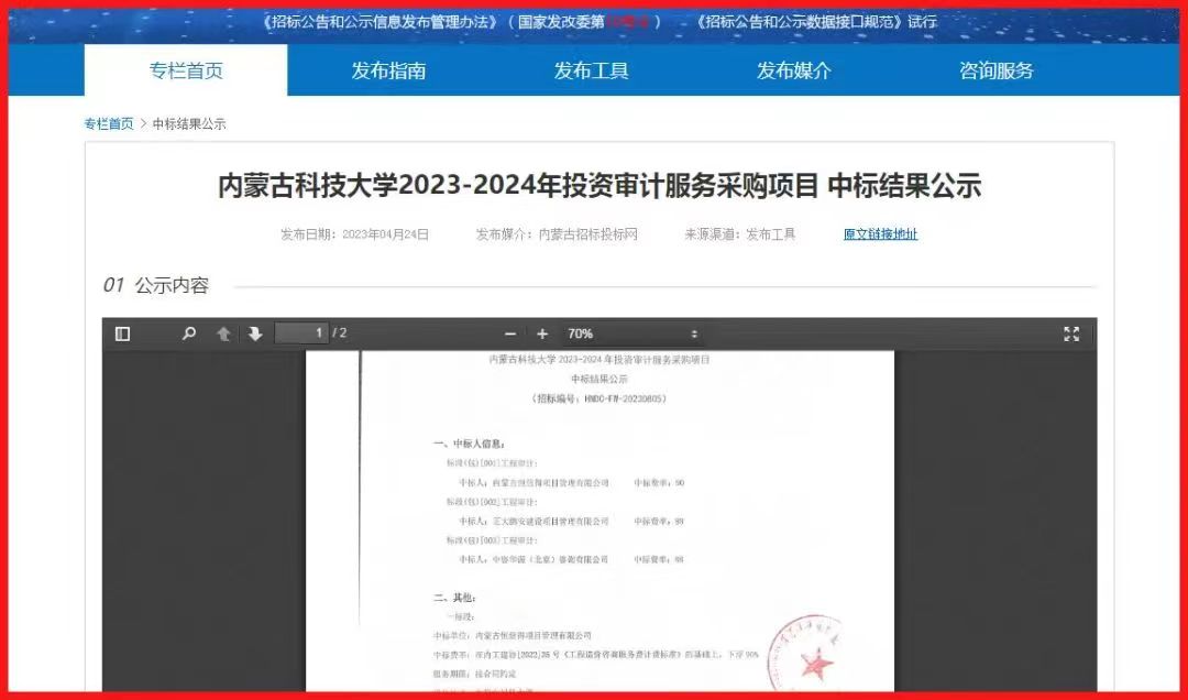 正大鵬安中標(biāo)內(nèi)蒙古科技大學(xué)2023-2024年投資審計(jì)服務(wù)采購(gòu)項(xiàng)目