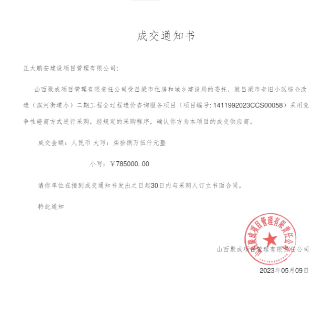 正大鵬安中標呂梁市老舊小區(qū)綜合改造(濱河街道辦)二期工程全過程造價咨詢服務項目