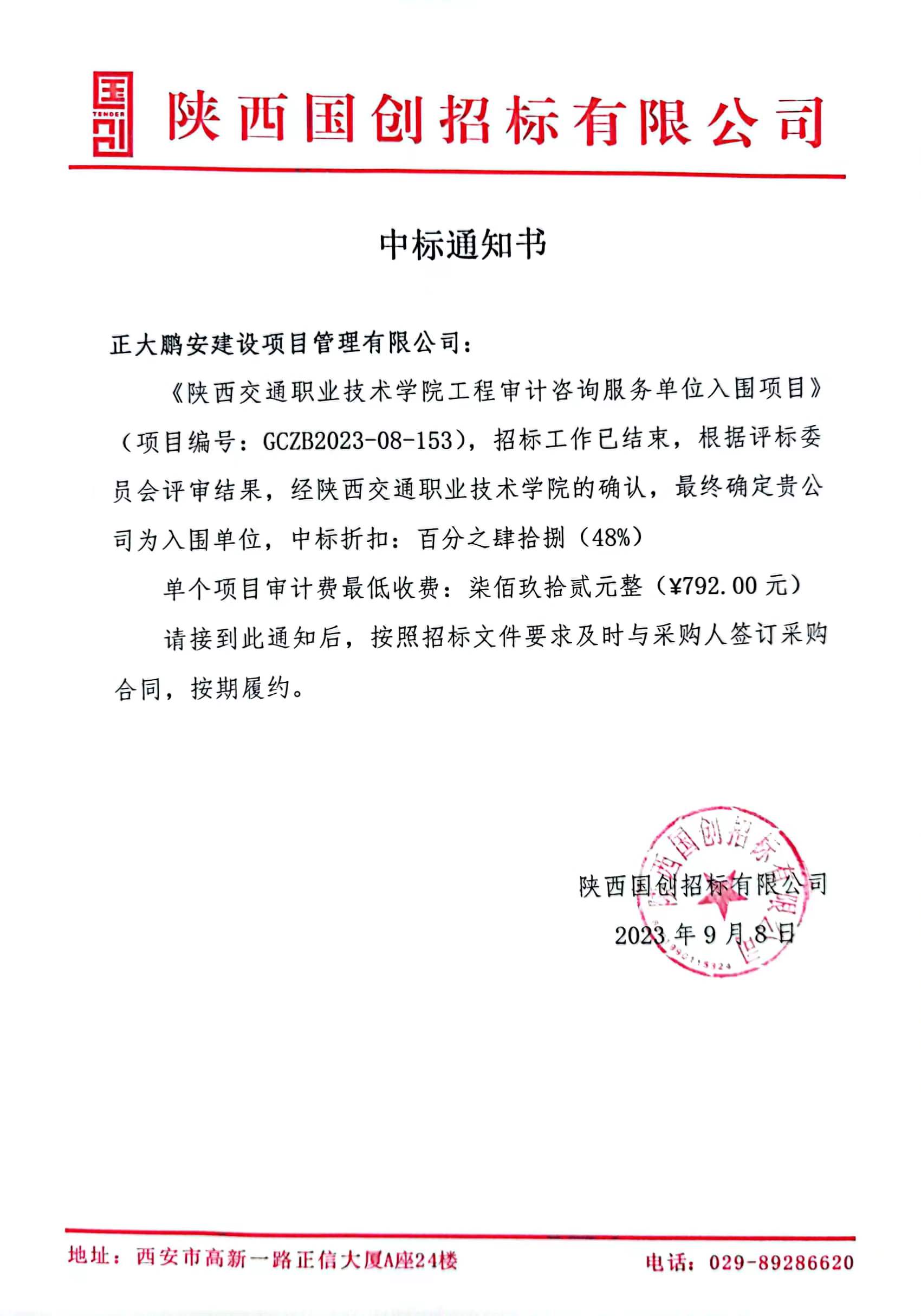 正大鵬安中標(biāo)陜西交通職業(yè)技術(shù)學(xué)院工程審計(jì)咨詢(xún)服務(wù)單位入圍項(xiàng)目