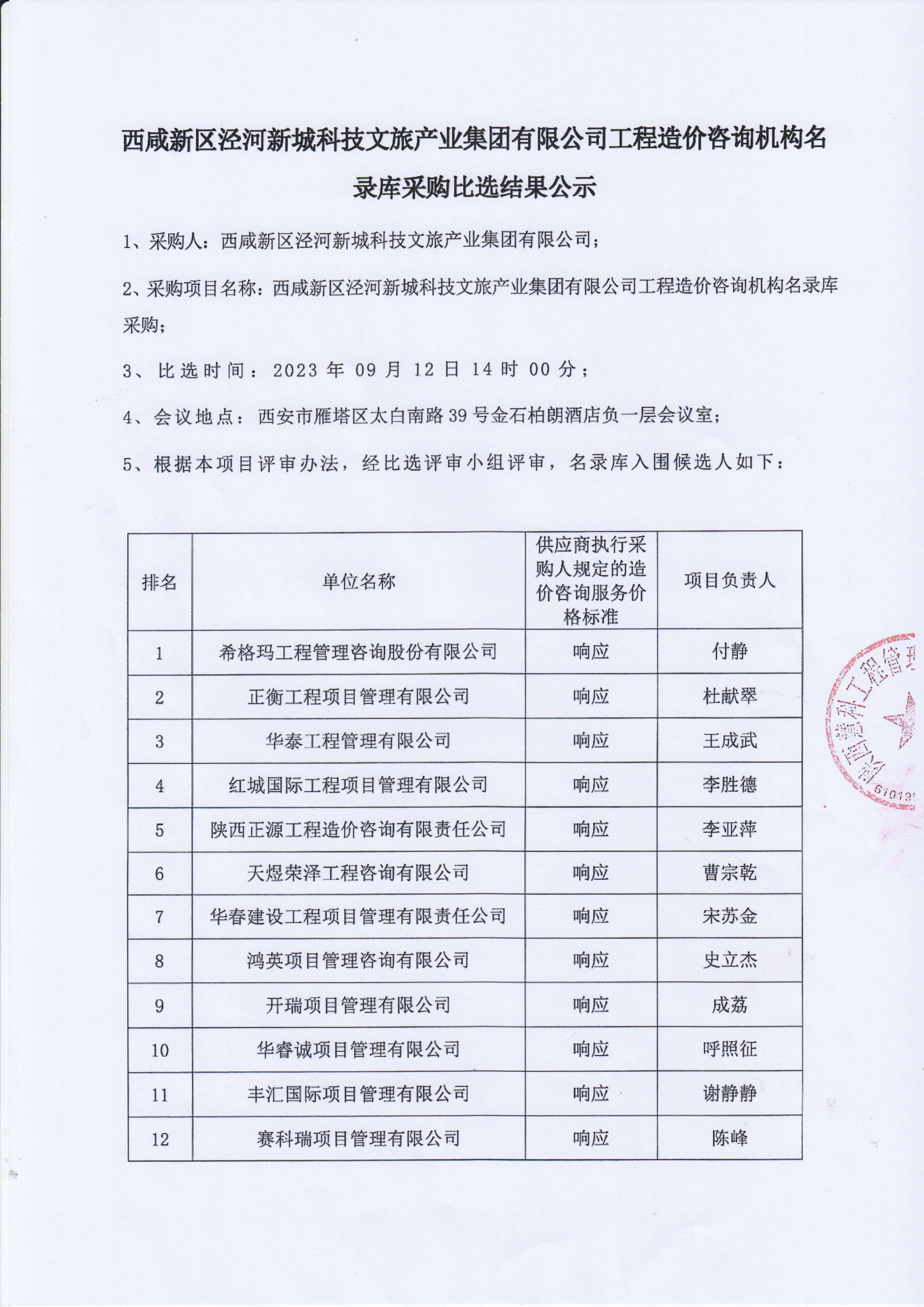 正大鵬安中標(biāo)西咸新區(qū)涇河新城科技文旅產(chǎn)業(yè)集團(tuán)有限公司工程造價(jià)咨詢機(jī)構(gòu)名錄庫采購