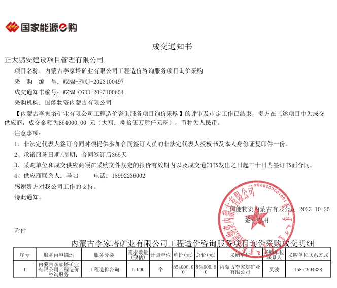 正大鵬安中標(biāo)內(nèi)蒙古李家塔礦業(yè)有限公司工程造價(jià)咨詢(xún)服務(wù)項(xiàng)目詢(xún)價(jià)采購(gòu)