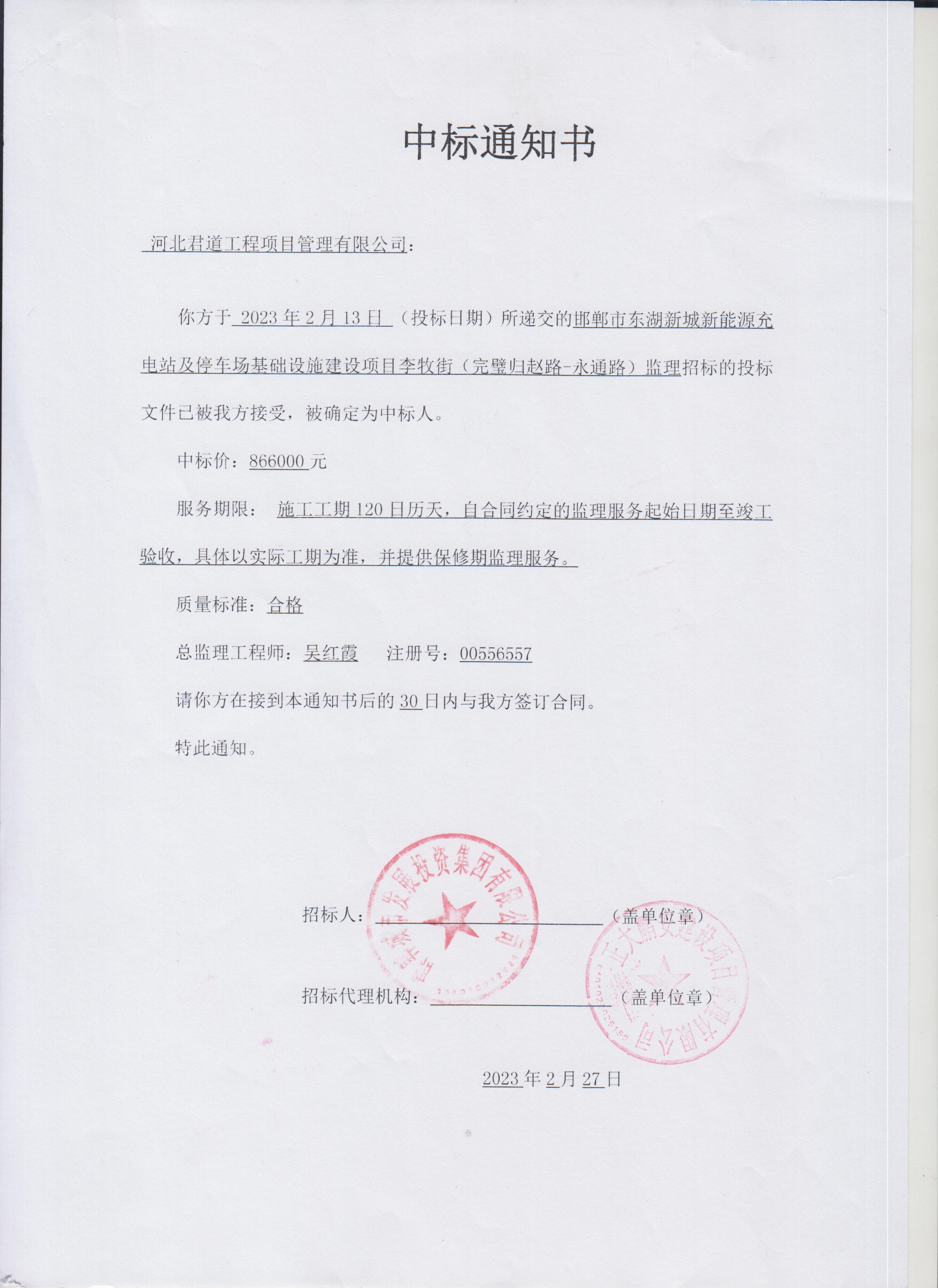 邯鄲市東湖新區(qū)新能源充電站及停車場(chǎng)基礎(chǔ)設(shè)施建設(shè)項(xiàng)目李牧街(完璧歸趙路-永通路)勘察設(shè)計(jì)施工總承包(EPC)及監(jiān)理項(xiàng)目