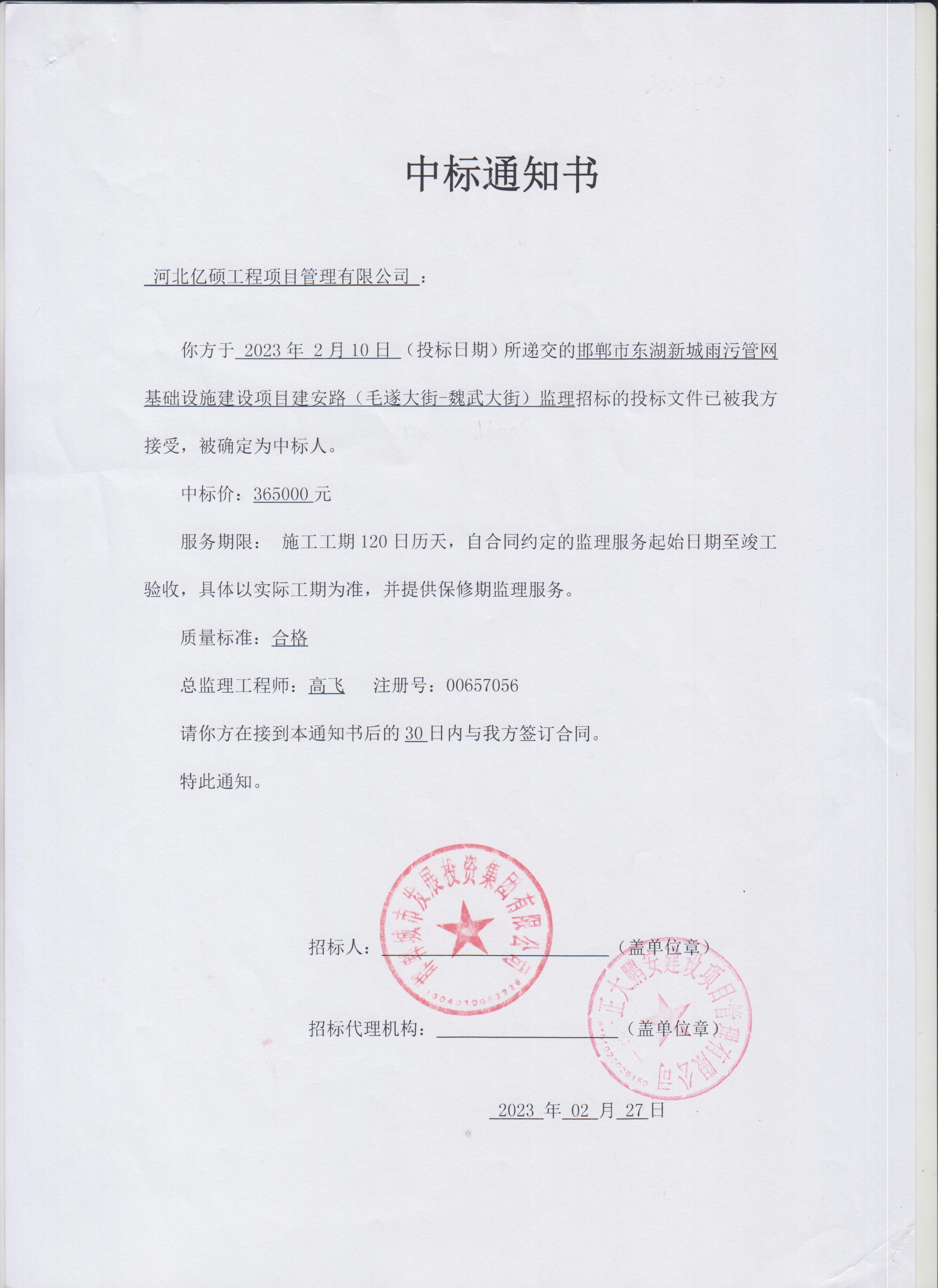 邯鄲市東湖新區(qū)雨污管網(wǎng)基礎(chǔ)設(shè)施建設(shè)項目建安路(毛遂大街-魏武大街)勘察設(shè)計施工工程總承包(EPC)及監(jiān)理項目