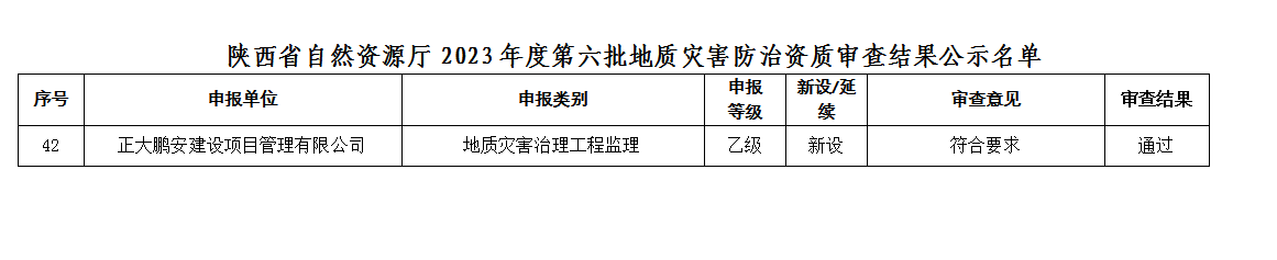 熱烈祝賀正大鵬安公司地質(zhì)災(zāi)害治理工程監(jiān)理新設(shè)乙級(jí)資質(zhì)獲得批準(zhǔn)