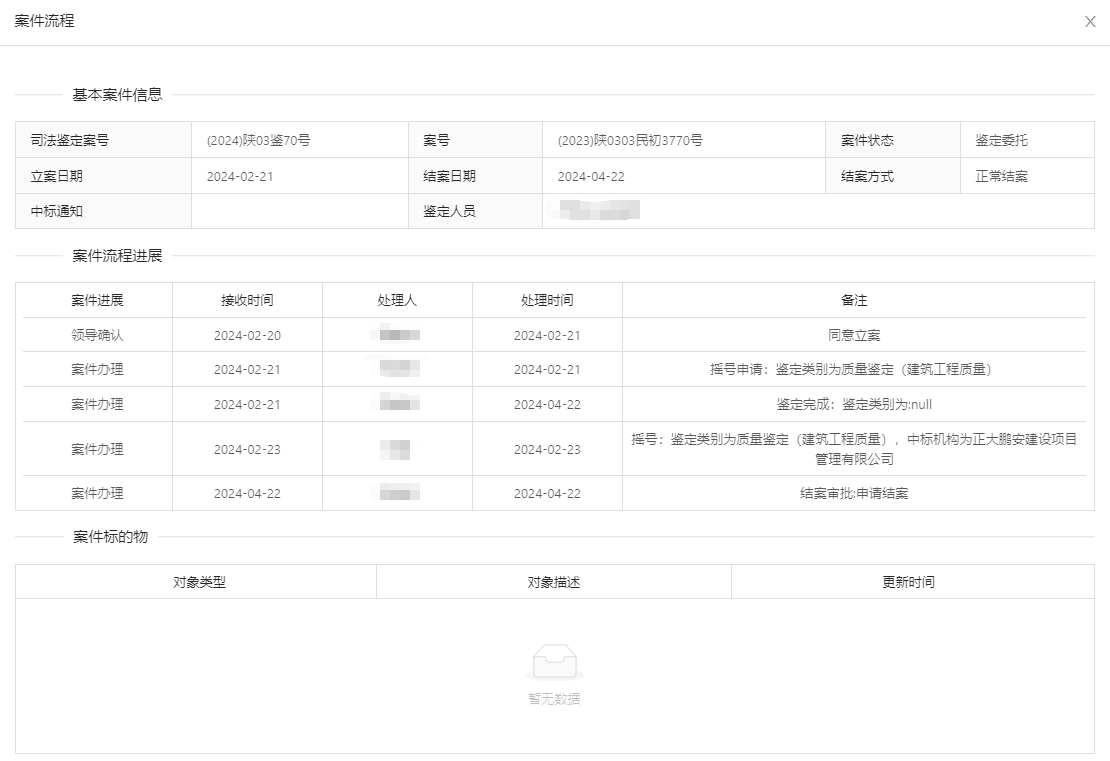 2024年2月21日,經(jīng)寶雞市中級人民法院確認,正大鵬安建設(shè)項目管理有限公司中標(biāo)“案涉房屋(軒苑盛世三期7號樓2單元1903號)衛(wèi)生間下水道主管道堵塞造成污水反流的原因”質(zhì)量司法鑒定項目。