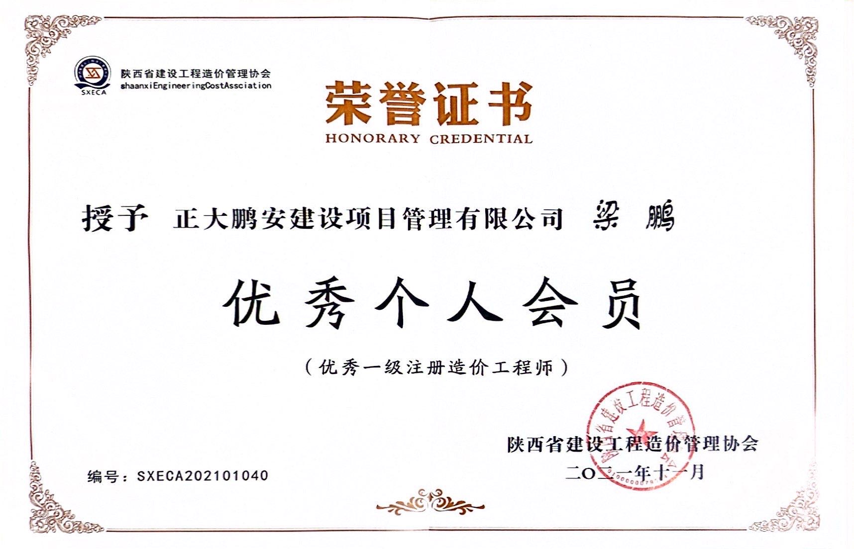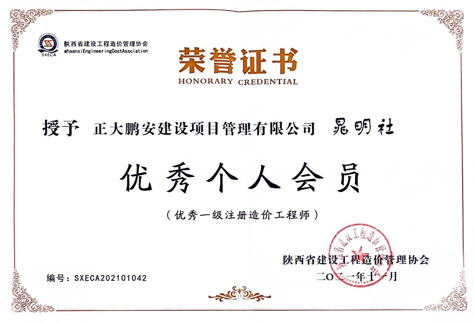 造價咨詢個人榮譽