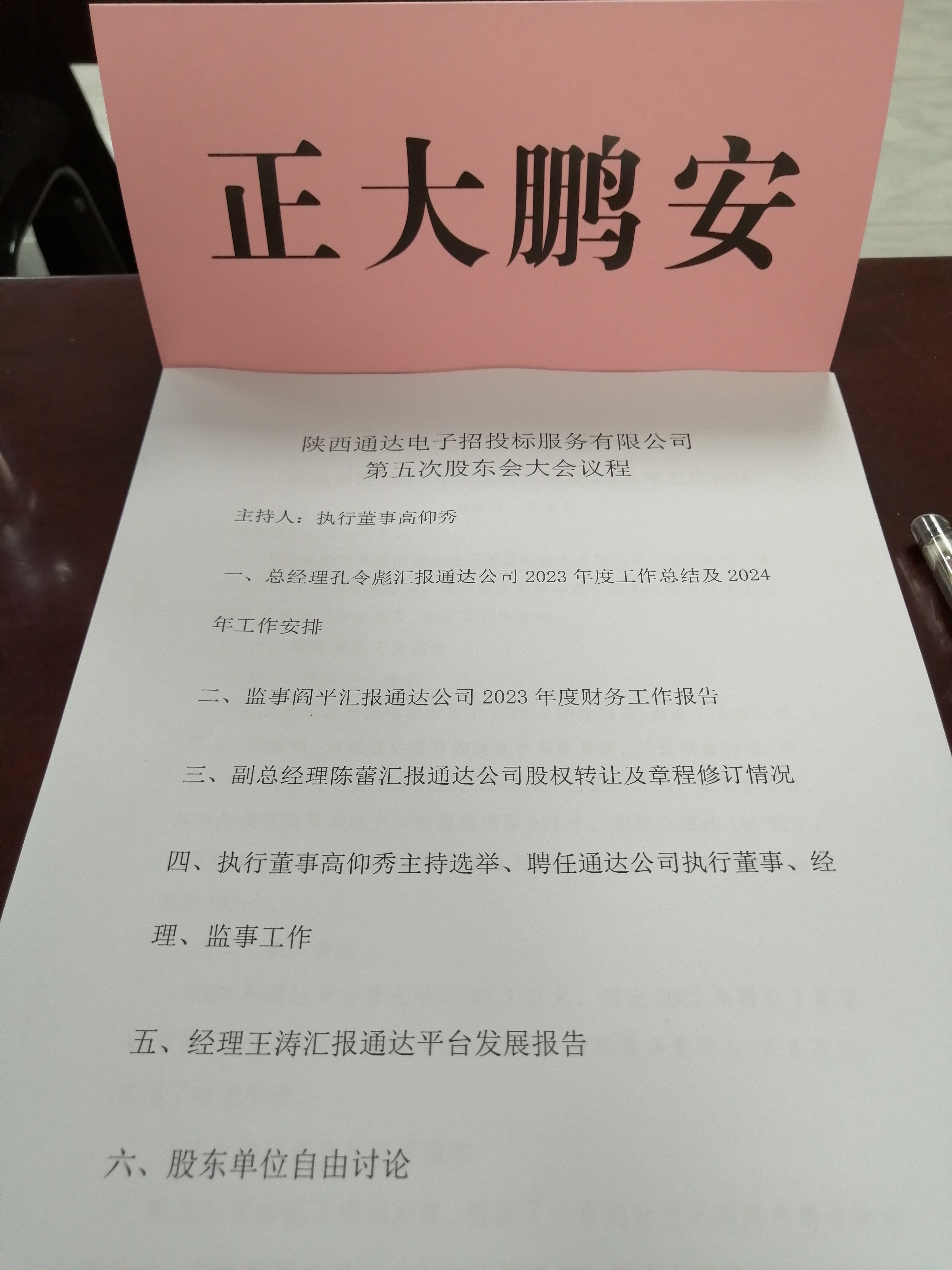 正大鵬安公司參加陜西通達第五次股東會